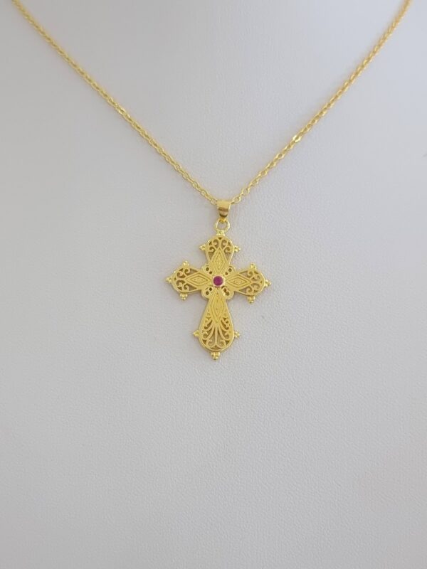 Σταυρός Βυζαντινό στυλ με ροζ ζιργκόν