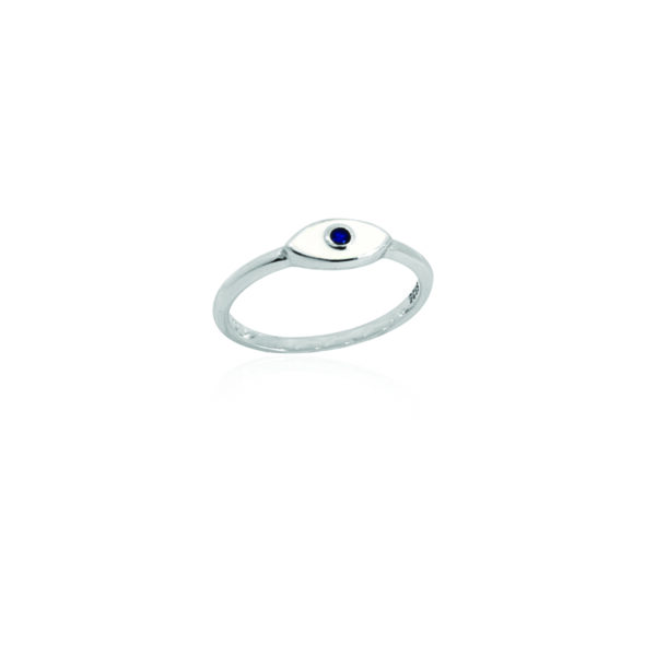 Υλικό : Ασήμι 925 Size: EU 52 Δαχτυλίδι μάτι άσπρο με σμάλτο και μπλε ζιργκόν