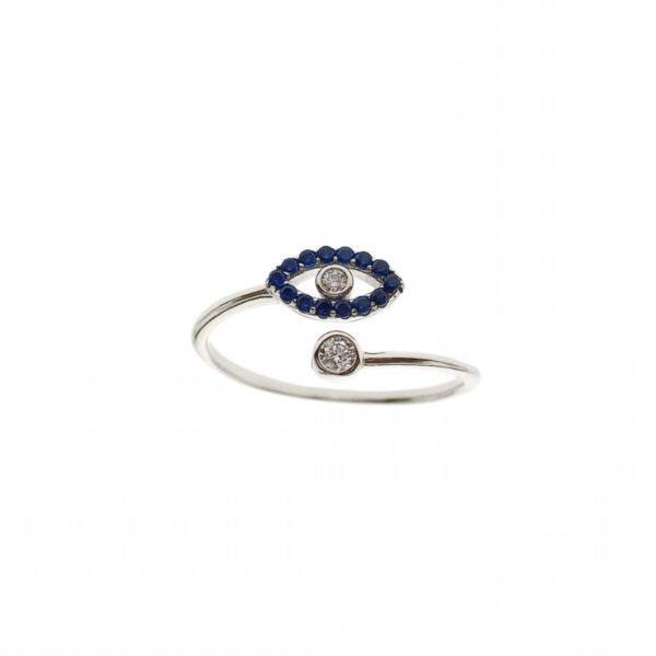 Υλικό: Ασήμι 925 Size: EU 54 (Ανοιγόμενο / Open end) Δαχτυλίδι με μαύρο μάτι και ζιργκόν