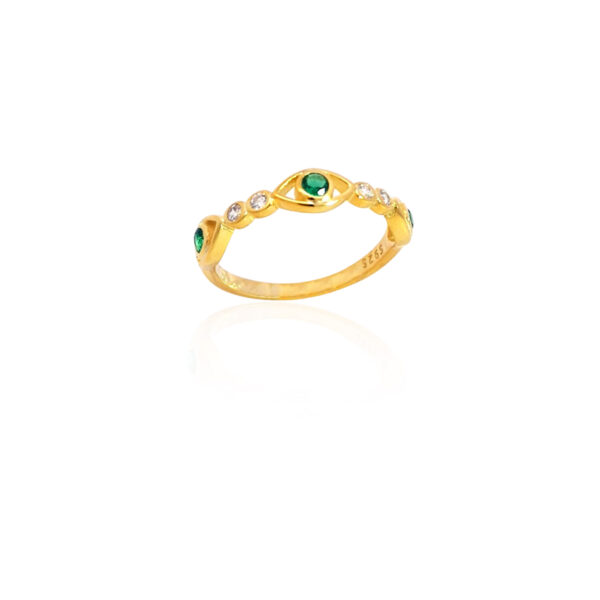 Υλικό : Ασήμι Επιχρυσωμένο 925 Size: EU 58 Δαχτυλίδι με ματάκια πράσινα και ζιργκόν