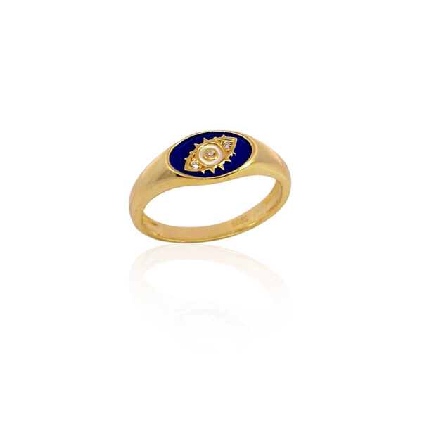 Υλικό : Ασήμι Επιχρυσωμένο 925 Size: EU 54 (Ανοιγόμενο / Open End) Δαχτυλίδι άσπρο μάτι με μπλε σμάλτο και ζιργκόν