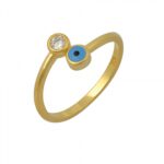 Υλικό : Ασήμι Επιχρυσωμένο 925 Size: Ανοιγόμενο / Open end Δαχτυλίδι με μπλε μάτι και ζιργκόν