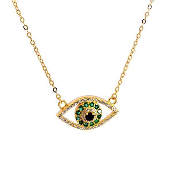 Υλικό : Ασήμι Επιχρυσωμένο 925 Κολιέ ματάκι με πράσινα, άσπρα και μαύρο ζιργκόν