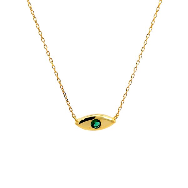 Υλικό : Ασήμι Επιχρυσωμένο 925 Κολιέ ματάκι με πράσινο ζιργκόν
