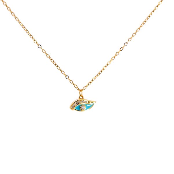 Υλικό : Ασήμι Επιχρυσωμένο 925 Κολιέ με μπλε ματάκι και ζιργκόν