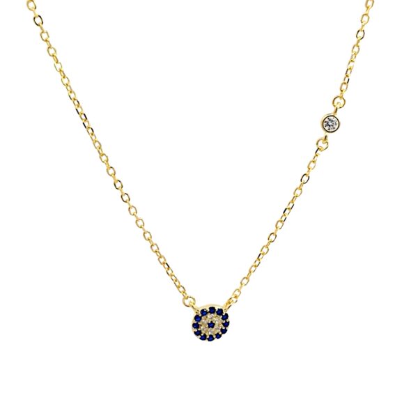 Υλικό : Ασήμι Επιχρυσωμένο 925 Κολιέ με μπλε ματάκι και ζιργκόν