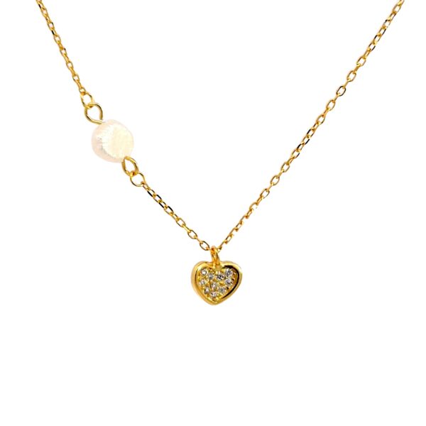 Κολιέ με μαργαριταράκι και καρδούλα με ζιργκόν
