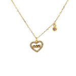 Υλικό : Ασήμι Επιχρυσωμένο 925 Κολιέ “mom” σε καρδούλα με ζιργκόν