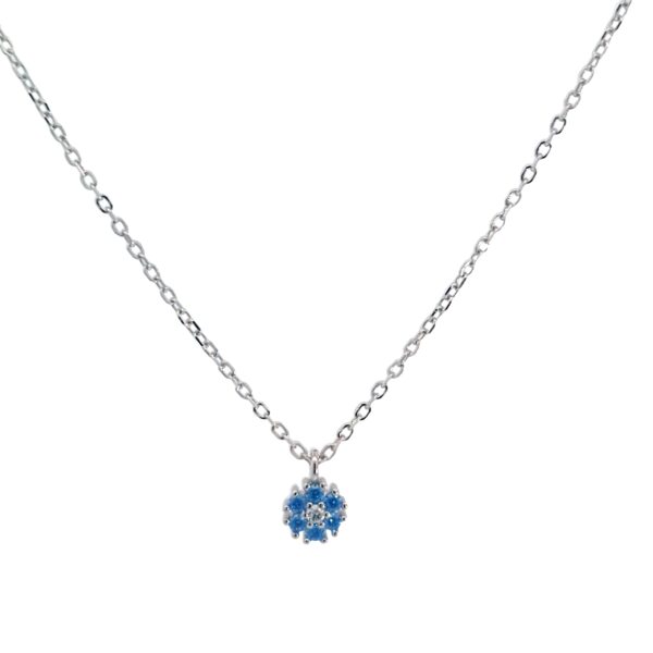 Υλικό : Ασήμι 925 Κολιέ λουλούδι με μπλε και άσπρο ζιργκόν