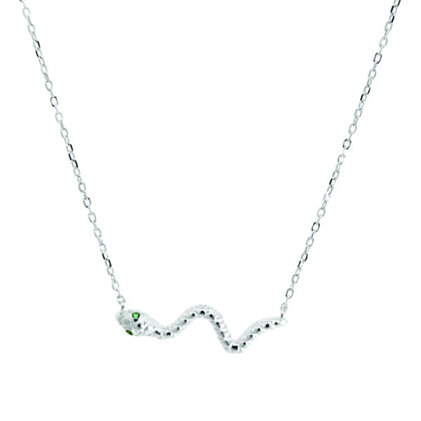 Υλικό : Ασήμι 925 Κολιέ φίδι με πράσινα ζιργκόν