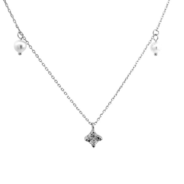 Υλικό : Ασήμι 925 Κολιέ αστεράκι με ζιργκόν και μαργαριταράκια