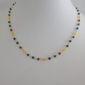 Ασημένιο 925 κολιέ ροζάριο, επιχρυσωμένο με petrol κρυστάλλους