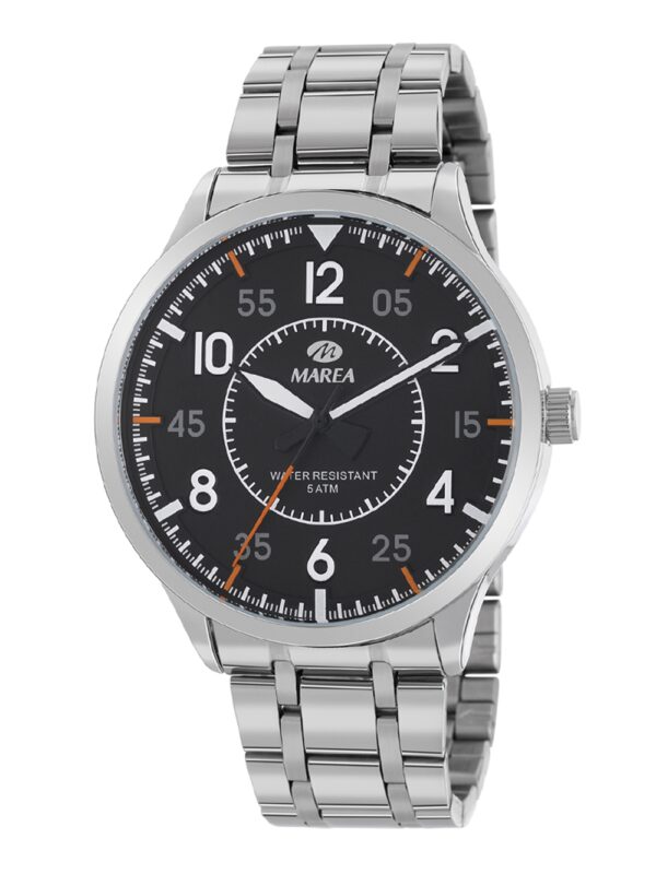 DESCRIPTION: Men watch Marea with silver band, silver case and white dial.