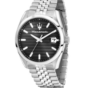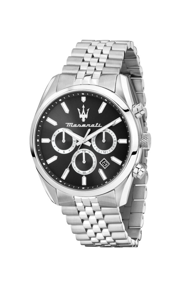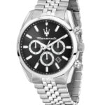 Ανδρικό ρολόι διαμέτρου 43mm με μηχανισμό Quartz Multifuction Ακριβείας. Έχει μαύρο καντράν με ασημένιους δείκτες. Η κάσα του είναι ασημένια από ανοξείδωτο ατσάλι και κρύσταλλο από ορυκτό κρύσταλλο. Έχει μπρασελέ από ανοξείδωτο ατσάλι και κούμπωμα ασφαλείας. Είναι αδιάβροχο (5 ΑΤΜ).
