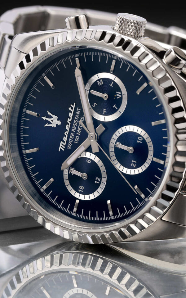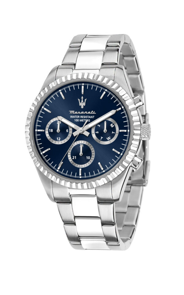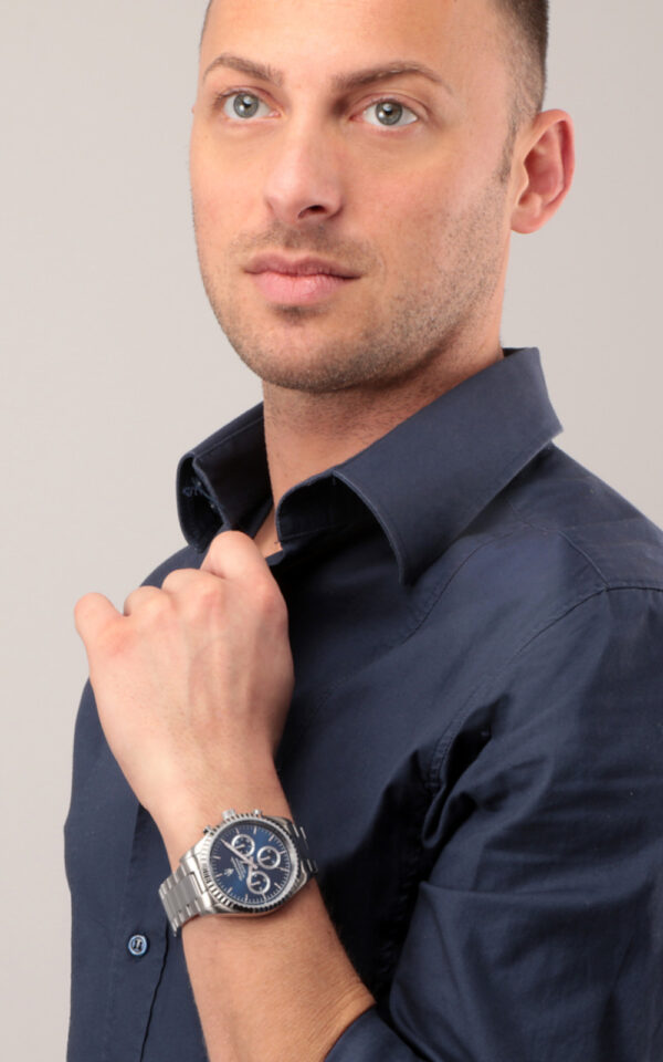 Αντρικό ρολόι διαμέτρου 43mm με μηχανισμό QUARTZ Multi-Function ακριβείας. Έχει μπλε καντράν με ασημένιους δείκτες και λεπτομέρειες. Η κάσα του είναι από ανοξείδωτο ατσάλι με κρύσταλλο από ορυκτό κρύσταλλο ειδικής σκλήρυνσης. Έχει μπρασελέ από ανοξείδωτο ατσάλι με κούμπωμα ασφαλείας. Είναι αδιάβροχο (10 ATM).