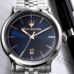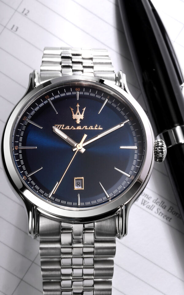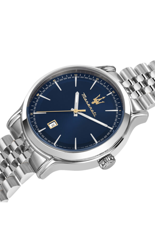 Αντρικό ρολόι διαμέτρου 42mm με μηχανισμό QUARTZ ακριβείας. Έχει μπλε καντράν με ασημένιους & χρυσούς δείκτες, λεπτομέρειες και ένδειξη ημερομηνίας. Η κάσα του είναι από ανοξείδωτο ατσάλι με κρύσταλλο από ορυκτό κρύσταλλο ειδικής σκλήρυνσης. Έχει μπρασελέ από ανοξείδωτο ατσάλι και κούμπωμα ασφαλείας. Είναι αδιάβροχο (10 ΑΤΜ).