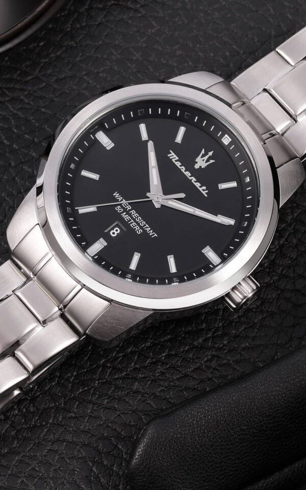 Ανδρικό ρολόι διαμέτρου 44mm με μηχανισμό Quartz ακριβείας. Έχει μαύρο καντράν με ασημένιους δείκτες και λεπτομέρειες και ένδειξη ημερομηνίας. Η κάσα του είναι από ανοξείδωτο ατσάλι με κρύσταλλο από ορυκτό κρύσταλλο ειδικής σκλήρυνσης. Έχει μπρασελέ από ανοξείδωτο ατσάλι και κούμπωμα ασφαλείας. Είναι αδιάβροχο (5 ATM)