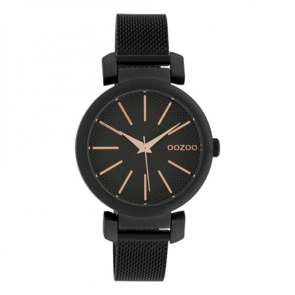 Ρολόι κόσμημα από την OOZOO, από την ολοκαίνουργια συλλογή TIMEPIECES σε μαύρο μεταλλικό πλαίσιο, μαύρο καντράν και μαύρο mesh band λουράκι
