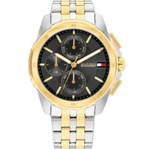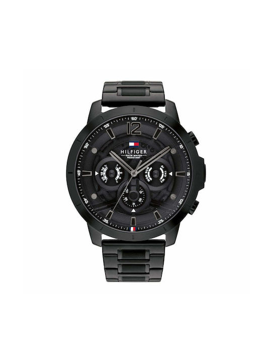 Ανδρικό αναλογικό ρολόι χρονογράφος της εταιρίας Tommy Hilfiger, XXL μεγέθους με μεταλλικό μπρασελέ σε μαύρο χρώμα. Διαθέτει μηχανισμό μπαταρίας, ο οποίος βασίζεται στην ηλεκτρική ενέργεια που παρέχει η μπαταρία, με αποτέλεσμα να υπάρχει ακρίβεια και αντοχή. Είναι ανθεκτικό στο πλύσιμο των χεριών ενώ είναι ακατάλληλο για κολύμβηση (5 atm/50 μέτρα).