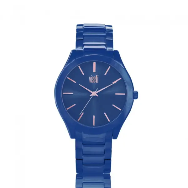 Ρολόι Ατσάλι Visetti PE-WSW980CC με μπλε χρώμα καντράν και μπρασελέ, με χρυσά στοιχεία.