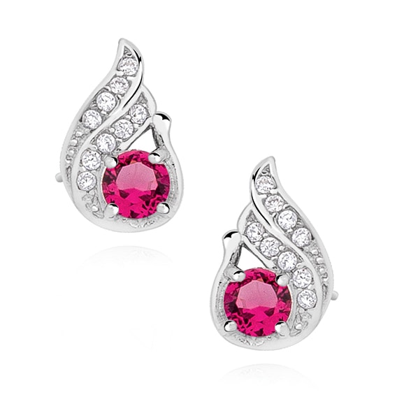 Carolyn - Ασημένια Σκουλαρίκια (925) με Ροζ Ζιργκόν