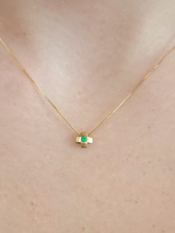 Υλικό: Χρυσό 14 Καράτια Σταυρός με αλυσίδα 41,5cm με πράσινο και άσπρο ζιργκόν