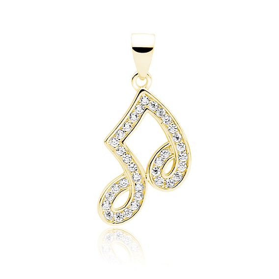 Υπέροχο μενταγιόν σε σχήμα μουσικής νότας που μπορείτε να προσθέσετε σε οποιαδήποτε αλυσίδα σας και να αναδείξει την εμφάνιση σας. Απο ασήμι 925, επιχρυσωμένο 24Κ και κρυστάλους ζιργκόν